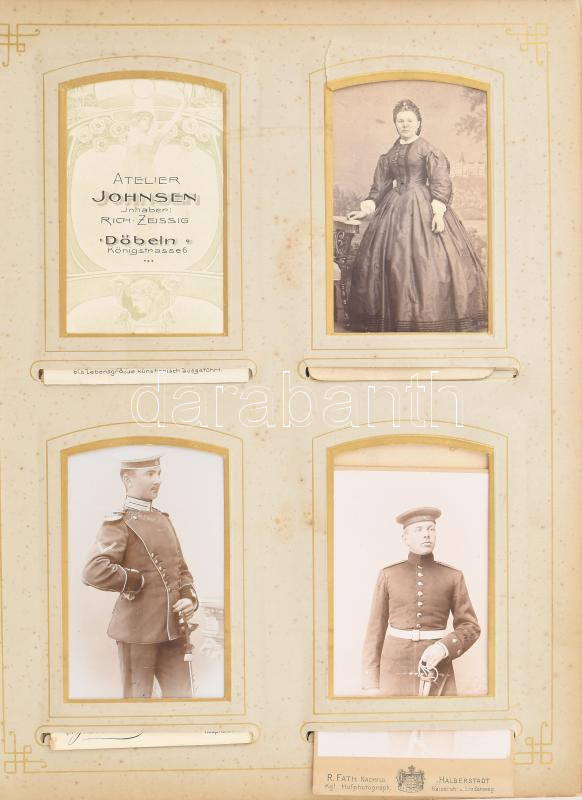 cca 1880-1900 Családi fotóalbum 54 db fotóval, esetleg az Amerikába kivándorolt Galle porosz nemesi család albuma, az egyik fotón ez a név szerepel. / cca 1880-1900 Family photo album with 54 photos, possibly the album of the Galle Prussian noble family who emigrated to America, one of the photos shows this name.