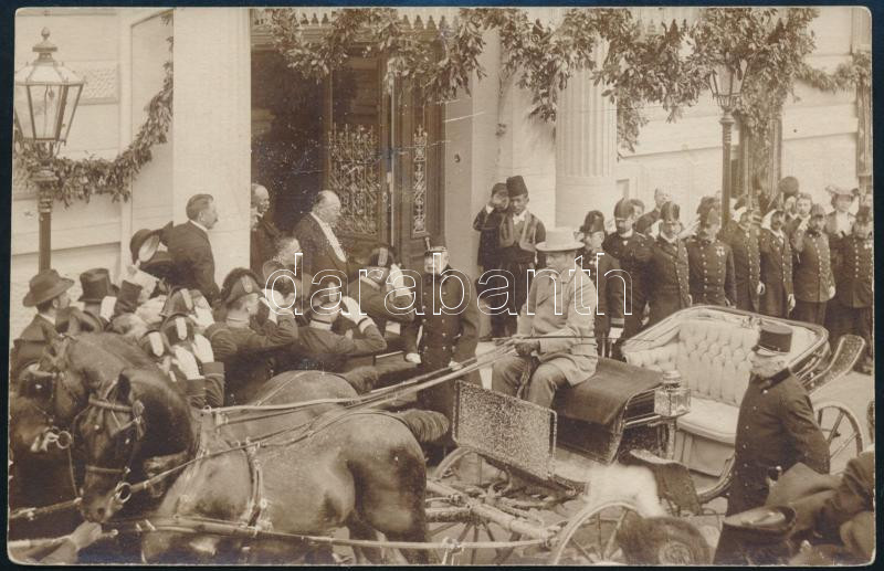 Beschreibung: cca 1912 I. Ferenc József császár fogadtatása Fiumében, fotó, hátoldalon felirattal, 9×14 cm