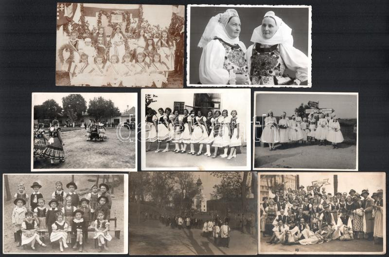 Beschreibung: cca 1920-1945 Magyar népviselet témájú fotó tétel, össz. 85 db fotó és fotólap, 6x4,5 cm és 14x9,5 cm közötti méretben