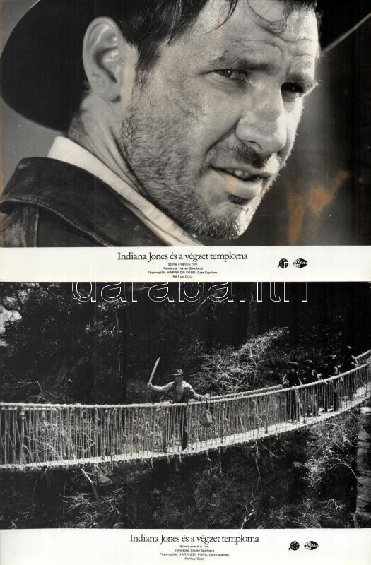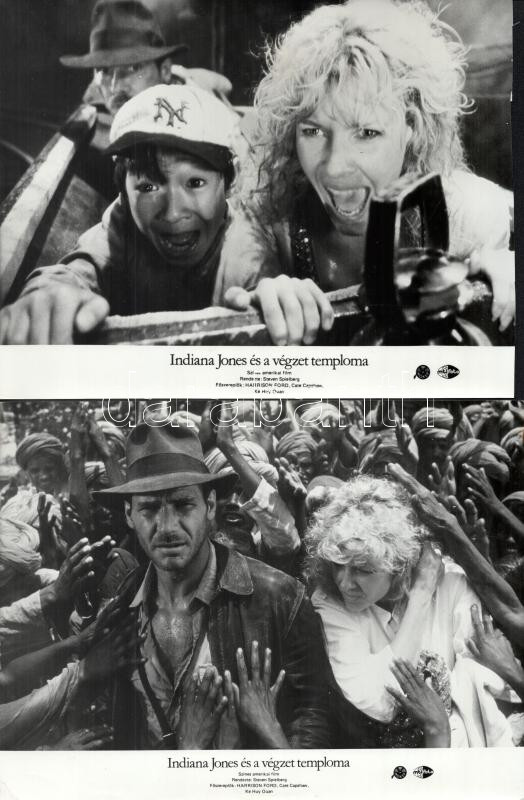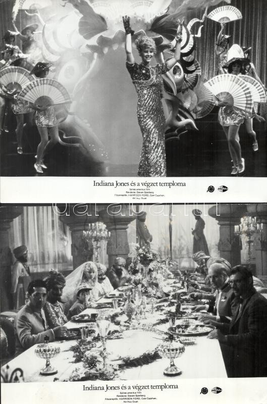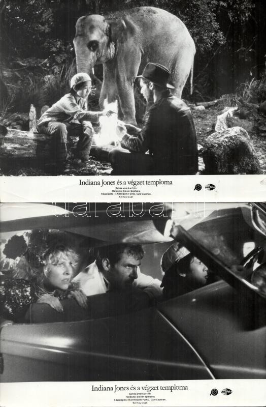 cca 1984 ,,Indiana Jones és a végzet temploma" című amerikai film jelenetei és szereplői, 8 db vintage produkciós filmfotó (vitrinfotó, lobbyfotó) ezüst zselatinos fotópapíron, a használatból eredő (esetleges) kisebb hibákkal, egy képen barnás elszíneződés, 18x24 cm