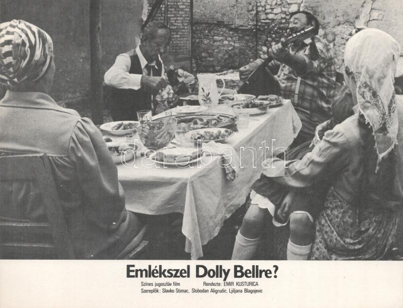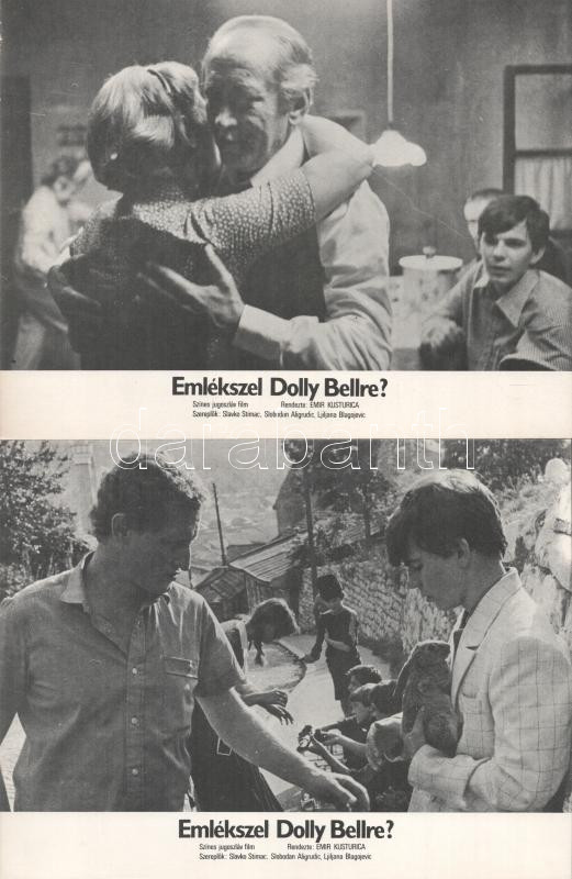 cca 1989 előtt készült ,,Emlékszel Dolly Bellre?" című jugoszláv film jelenetei és szereplői, 3 db produkciós filmfotó (vitrinfotó, lobbyfotó) nyomdatechnikával sokszorosítva kartonpapírra, egyoldalas nyomással, a használatból eredő (esetleges) kisebb hibákkal, 18x24 cm