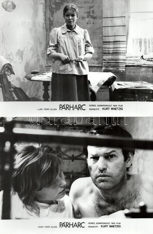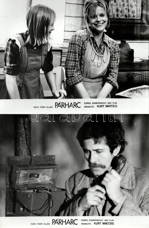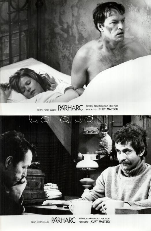 cca 1989 előtt készült ,,Párharc" című NDK-beli film jelenetei és szereplői, 13 db vintage produkciós filmfotó (vitrinfotó, lobbyfotó) ezüst zselatinos fotópapíron, a használatból eredő (esetleges) kisebb hibákkal, 18x24 cm