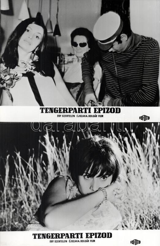cca 1989 előtt készült ,,Tengerparti epizód" című bolgár film jelenetei és szereplői, 11 db vintage produkciós filmfotó (vitrinfotó, lobbyfotó) ezüst zselatinos fotópapíron, a használatból eredő (esetleges) kisebb hibákkal, 18x24 cm
