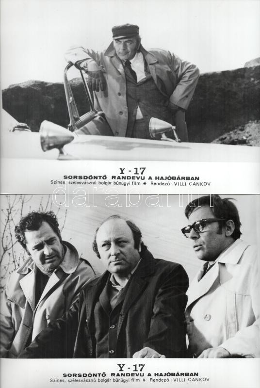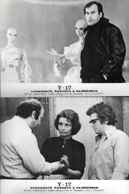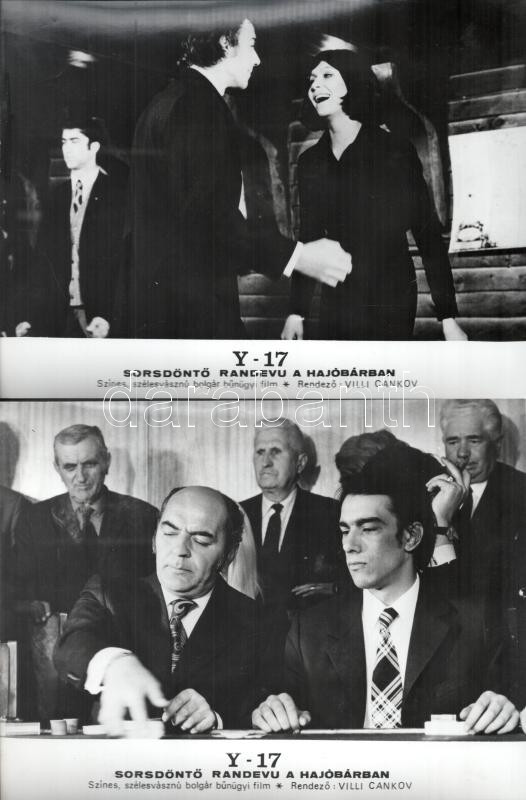 cca 1989 előtt készült ,,Y-17 - sorsdöntő randevú a hajóbárban" című szovjet film jelenetei és szereplői, 19 db vintage produkciós filmfotó (vitrinfotó, lobbyfotó) ezüst zselatinos fotópapíron, a használatból eredő (esetleges) kisebb hibákkal, 18x24 cm