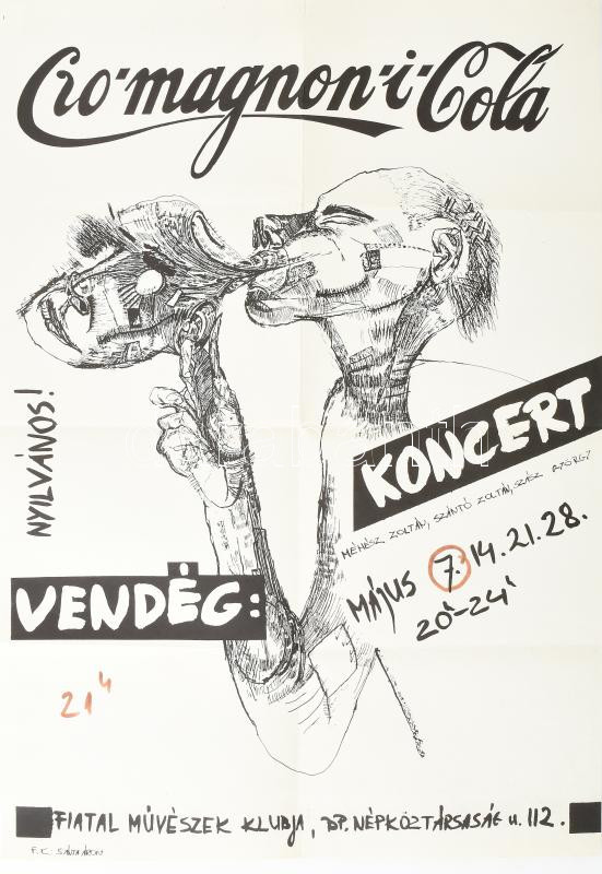 Cro-magnon-i-Cola koncert, Fiatal Művészek Klubja, plakát, hajtott, 42... https://www.darabanth.com/de/42-Gross-Auktion/42.1/Kunst-Skulpturen-Historische-Dokumenten-andere-Sammelgebiete/Poster~17250/Cro-magnon-i-Cola-koncert-Fiatal-Muveszek-Klubja-plakat-hajtott-42x28-cm~II3118624