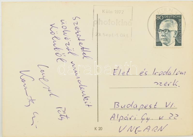 1972 Karinthy Ferenc (192-1992) és Lengyel Péter (1939) a Pen club eln... https://www.darabanth.com/de/42-Gross-Auktion/42.1/Kunst-Skulpturen-Historische-Dokumenten-andere-Sammelgebiete/Signatur~17240/1972-Karinthy-Ferenc-192-1992-es-Lengyel-Peter-1939-a-Pen-club-elnokeinek-autograf-levelezolapja~II3119950