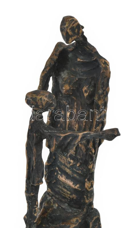 Beschreibung: Pauer Gyula (1941 - 2012): Anya gyermekével. 1963-1966, bronzkópia: 2005, patinázott bronz, márvány talapzaton, 36x19,5x15 cm