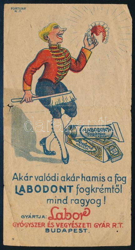 cca 1920 Labodont fogkrém, Labor Gyógyszer és Vegyészeti Gyár Budapest... https://www.darabanth.com/de/42-Gross-Auktion/42.1/Kunst-Skulpturen-Historische-Dokumenten-andere-Sammelgebiete/Werbungen~17242/cca-1920-Labodont-fogkrem-Labor-Gyogyszer-es-Vegyeszeti-Gyar-Budapest-szamolocedula-hajtott-~II3121385