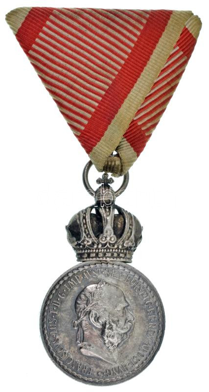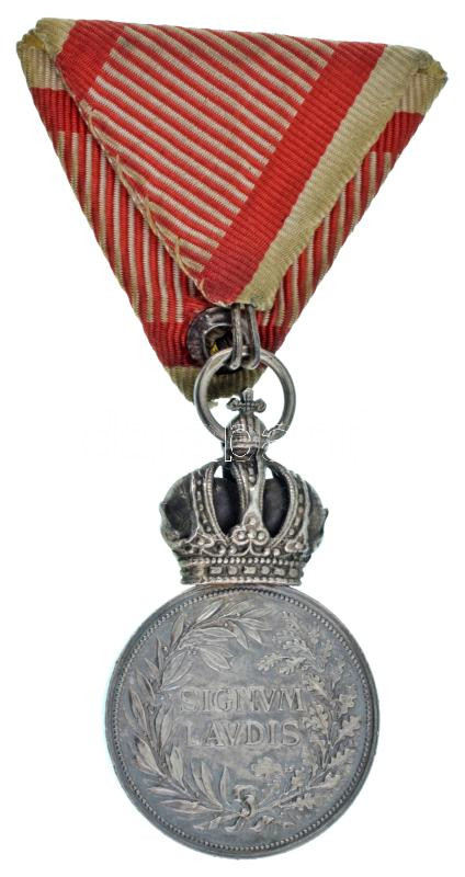 Hungary 1890. "Silver Military Merit Medal on a war ribbon" hallmarked Ag decoration on ribbon C:AU,XF small edge error