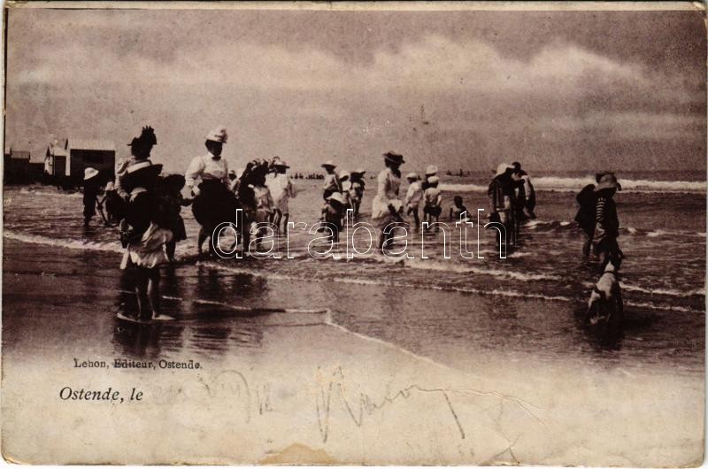 Beschreibung: 1900 Oostende, Ostende; beach, bathers (creases)