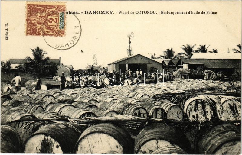 Cotonou, Wharf, Embarquement d'huille de Palme / African folklore... https://www.darabanth.com/de/420-Fernauktion/420.0/Ansichtskarten/Benin-Dahomey~1000068/Cotonou-Wharf-Embarquement-dhuille-de-Palme-African-folklore-wharf-palm-oil-boarding~II2660309
