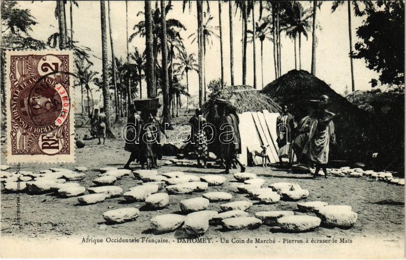 Beschreibung: Dahomey, Un Coin de Marché, Pierres a écraser le Mais / African folklore, market, stones to crash the maize