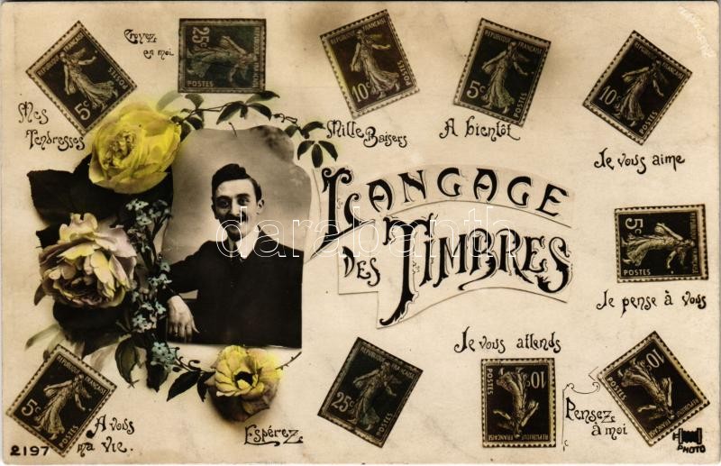 1911 Langage des Timbres / Levélbélyeg nyelv / The Language of Stamps,... https://www.darabanth.com/de/420-Fernauktion/420.0/Ansichtskarten/Briefmarken~1000018/1911-Langage-des-Timbres-Levelbelyeg-nyelv-The-Language-of-Stamps-romantic-postcard-fl~II2658947