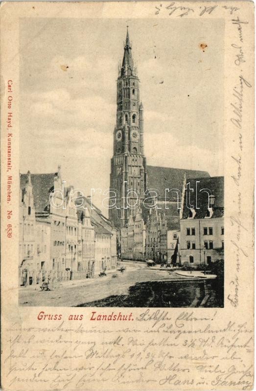 1901 Landshut, street view, church (fl) https://www.darabanth.com/de/420-Fernauktion/420.0/Ansichtskarten/Deutschland~1000105/1901-Landshut-street-view-church-fl~II2660983