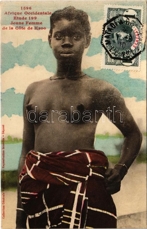 1910 Afrique Occidentale. Jeune Femme de la Cote de Kroo / African fol... https://www.darabanth.com/de/420-Fernauktion/420.0/Ansichtskarten/Folklore~1000023/1910-Afrique-Occidentale-Jeune-Femme-de-la-Cote-de-Kroo-African-folklore-half-naked-woman~II2661124