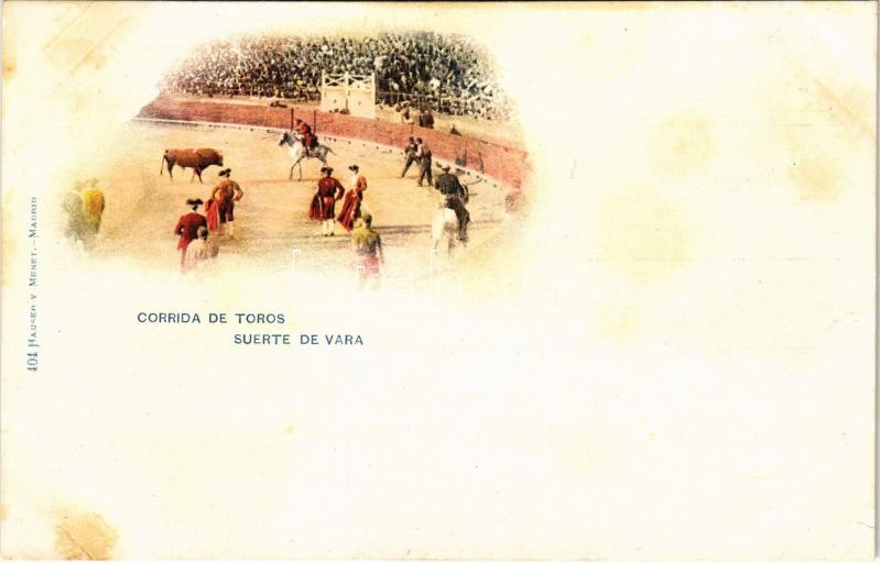 Corrida de Toros, suerte de vara / Spanish folklore, bullfight (fl) https://www.darabanth.com/de/420-Fernauktion/420.0/Ansichtskarten/Folklore~1000023/Corrida-de-Toros-suerte-de-vara-Spanish-folklore-bullfight-fl~II2659288