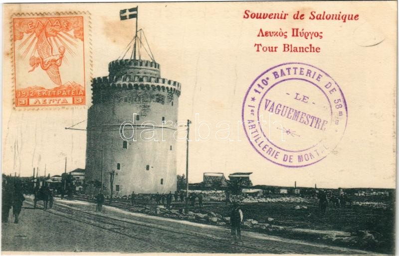 Beschreibung: 1916 Thessaloniki, Saloniki, Salonica, Salonique; Tour Blanche / White Tower + "110. Batterie de 58m/m Ier Artillerie de Montagne" (r)