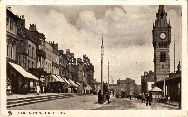 1907 Darlington, High Row, tram, shops (EK) https://www.darabanth.com/de/420-Fernauktion/420.0/Ansichtskarten/GroC39Fbritannien~1000104/1907-Darlington-High-Row-tram-shops-EK~II2664589