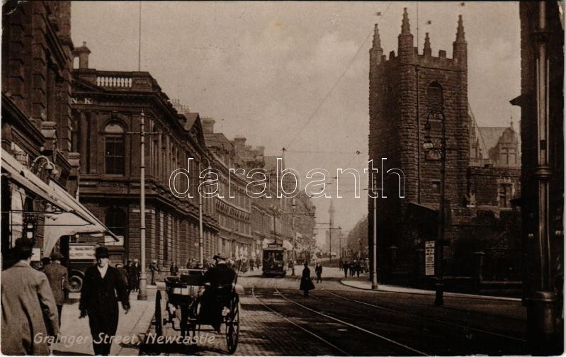 Newcastle, Grainger Street, tram (EK) https://www.darabanth.com/de/420-Fernauktion/420.0/Ansichtskarten/GroC39Fbritannien~1000104/Newcastle-Grainger-Street-tram-EK~II2663808