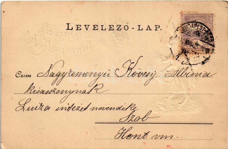 1901 Boldog húsvéti ünnepeket / Easter greeting art postcard with rabb... https://www.darabanth.com/de/420-Fernauktion/420.0/Ansichtskarten/GruC39Fkarten-Feste~1000056/1901-Boldog-husveti-unnepeket-Easter-greeting-art-postcard-with-rabbit-eggs-and-chicken-Emb-~II2638715