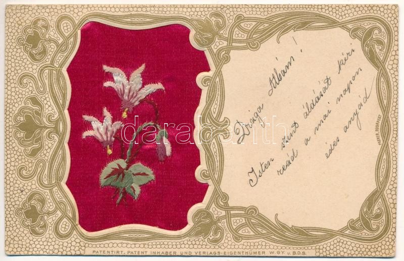 1901 Greeting card with silk flowers. Art Nouveau, floral (EK) https://www.darabanth.com/de/420-Fernauktion/420.0/Ansichtskarten/GruC39Fkarten-Feste~1000056/1901-Greeting-card-with-silk-flowers-Art-Nouveau-floral-EK~II2638675