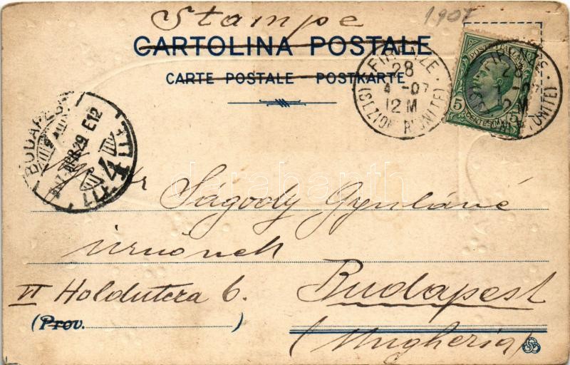 Beschreibung: 1907 Da Firenze, paese dei fiori, dell'arte e della poesia, i miei cordiali saluti / Italian greeting art postcard from Firenze. Emb. litho (EK)