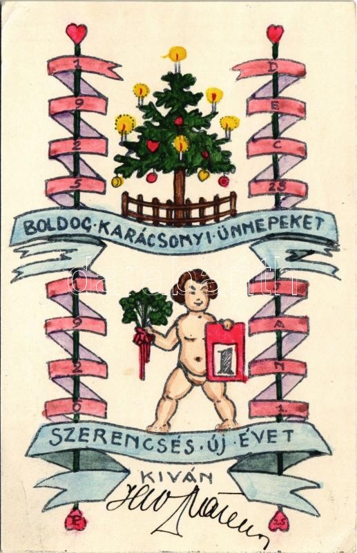 1925 Boldog karácsonyi ünnepeket és szerencsés Újévet kíván. Kézzel ra... https://www.darabanth.com/de/420-Fernauktion/420.0/Ansichtskarten/GruC39Fkarten-Feste~1000056/1925-Boldog-karacsonyi-unnepeket-es-szerencses-Ujevet-kivan-Kezzel-rajzolt-Christmas-and~II2658431