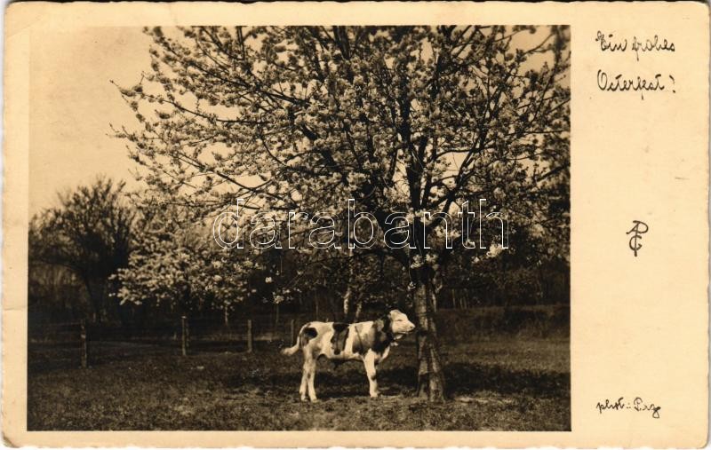 1931 Ein frohes Osterfest! / Easter greetings with cow (EK) https://www.darabanth.com/de/420-Fernauktion/420.0/Ansichtskarten/GruC39Fkarten-Feste~1000056/1931-Ein-frohes-Osterfest-Easter-greetings-with-cow-EK~II2665952