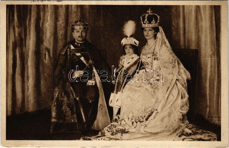 1917 IV. Károly, Zita királyné és Ottó a trónörökös. Magyar Vöröskereszt Egylet Szeretetadomány osztálya / Charles I of Austria, Queen Zita and Crown Prince Otto + "K.u.K. Infanterieregiment Kaiser Leopold II Nr. 33." (EK)