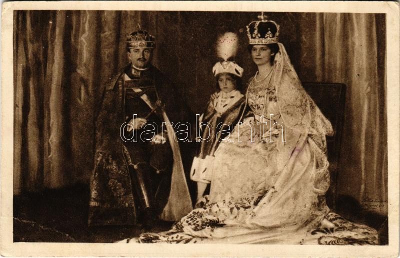 1918 IV. Károly, Zita királyné és Ottó a trónörökös. Magyar Vöröskereszt Egylet Szeretetadomány osztálya / Charles I of Austria, Queen Zita and Crown Prince Otto (EK)