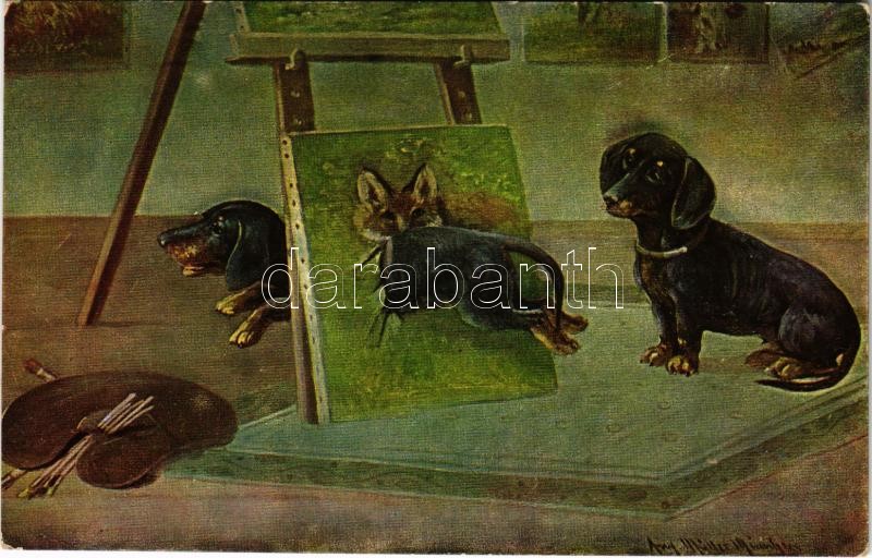 Dachshund dogs. WSSB 6913/2. s: Müller https://www.darabanth.com/de/420-Fernauktion/420.0/Ansichtskarten/Hunde~1000038/Dachshund-dogs-WSSB-69132-s-Muller~II2665894