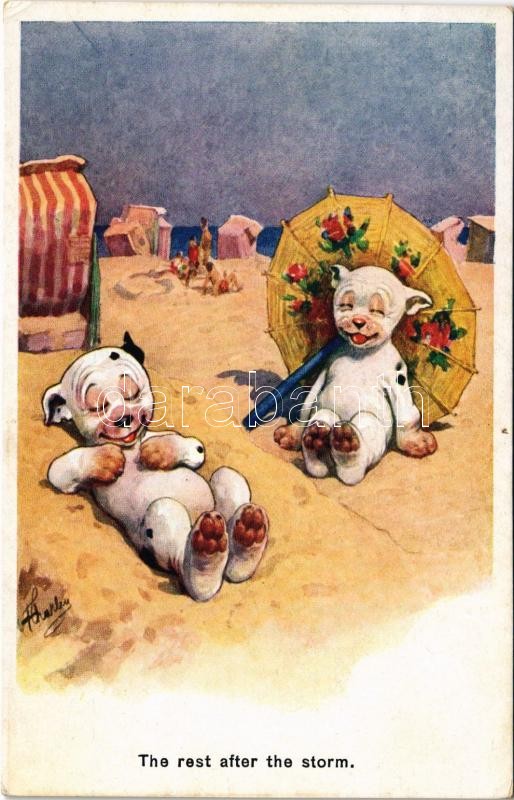 "The rest after the storm" Bonzo dog on the beach. B.K.W.I. ... https://www.darabanth.com/de/420-Fernauktion/420.0/Ansichtskarten/Hunde~1000038/The-rest-after-the-storm-Bonzo-dog-on-the-beach-BKWI-XXXI-2-s-F-Charles-EK~II2658426