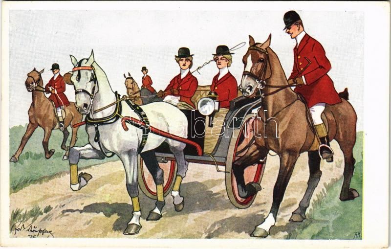 Hunting company, horse riding. B.K.W.I. 723-3. s: Fritz Schönpflug https://www.darabanth.com/de/420-Fernauktion/420.0/Ansichtskarten/Jagd~1000057/Hunting-company-horse-riding-BKWI-723-3-s-Fritz-Schonpflug~II2660482