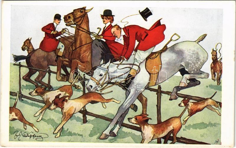 Hunting with horses and dogs. B.K.W.I. 723-5. s: Fritz Schönpflug https://www.darabanth.com/de/420-Fernauktion/420.0/Ansichtskarten/Jagd~1000057/Hunting-with-horses-and-dogs-BKWI-723-5-s-Fritz-Schonpflug~II2660479