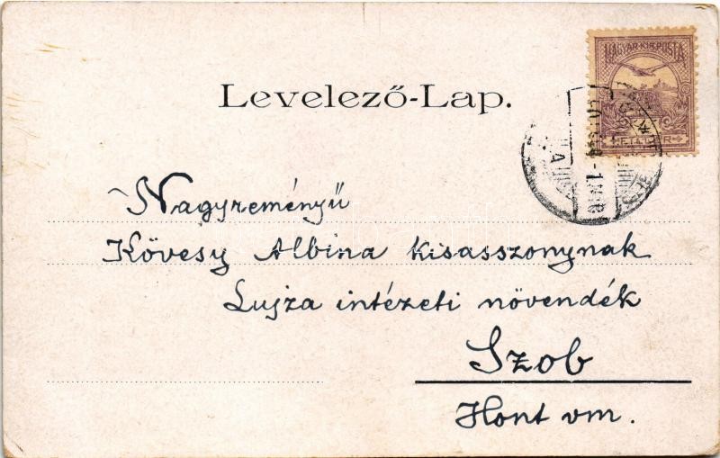 Beschreibung: 1900 Cat and dog with sausage. Floral, litho (EK)