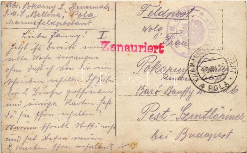 1915 SM Kleiner Kreuzer "Emden" beschießt Madras im Golf von Bengalen / WWI German Navy (Kaiserliche Marine) art postcard + "K.U.K. KRIEGSMARINE SM SCHIFF BELLONA" (fl)