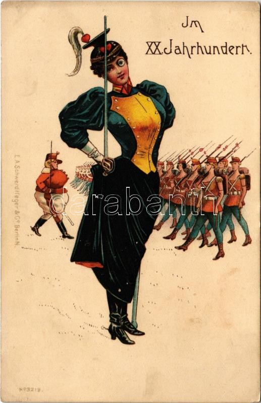 Im XX. Jahrhundert / A XX. században - Női hadsereg. Feminista képeslap / In the 20th century - Women's army. Feminist art postcard. E.A. Schwerdtfeger & Co. No. 3219. litho (EK)