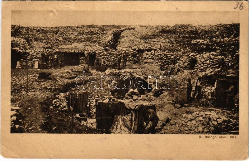 1917 Reserve-Stellungen am Mte. S. Martino. Reingewinn der Witwen u. Waisen von Gefallenen an der Isonzofront. Verlag Isonzofonds Feldpost 515 / Tartalék állásaink a Mte. S. Martinon / WWI Austro-Hungarian K.u.K. military, Italian front + "Lt. Alex v. Kolosváry Borcsa K.u.K. Feldpost No. 3." (lyukak / holes)