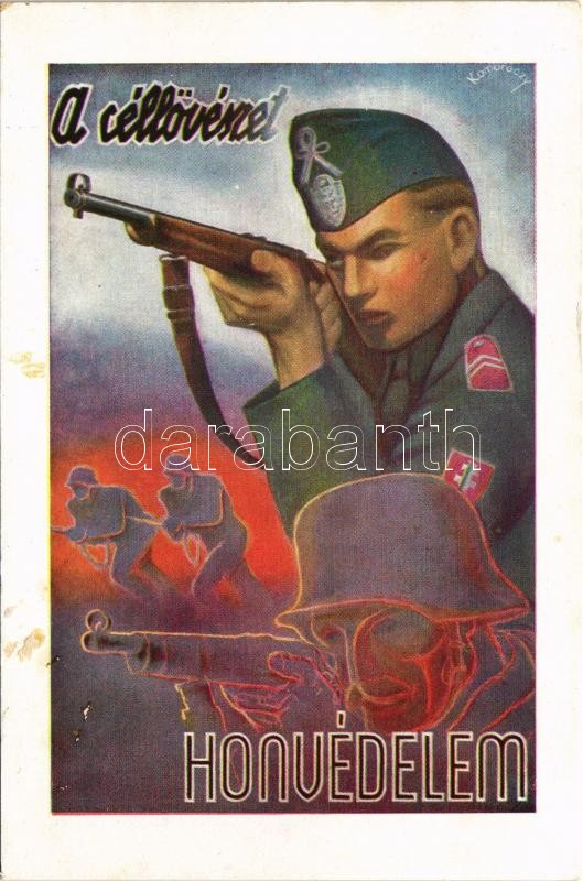A céllövészet honvédelem. Sportplakát sorozat 2. sz. Kiadja az Ifjúság Országos Vezetője. M. kir. honvéd térképészeti intézet / Hungarian military, patriotic propaganda, target shooting s: Komoróczy Lajos (fl)
