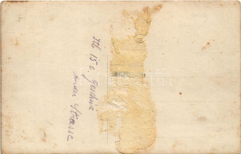 Beschreibung: Itl. 15c. Geschütz an der Strasse / WWI Austro-Hungarian K.u.K. military, captured Italian cannon. photo (ragasztónyom / glue mark)