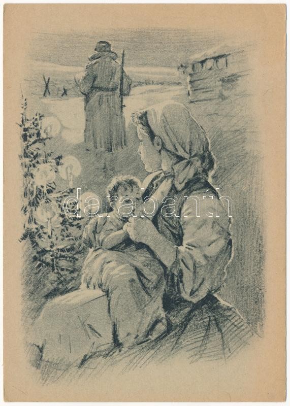 Beschreibung: Tábori Postai Levelezőlap. Kiadja a M. kir. Honvéd haditudósító osztály parancsnoksága / WWII Hungarian military field art postcard (EK)