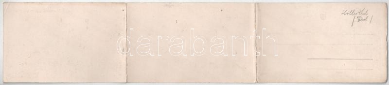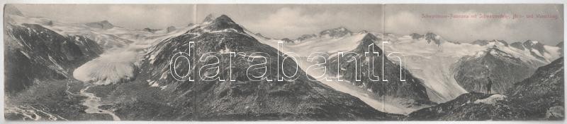 Beschreibung: Zillertaler Alpen, Zillertal Alps (Tirol); Schwarzensee-Panorama mit Schwarzenstein-, Horn- und Waxeckkees / mountains. 3-tiled folding panoramacard (EK)
