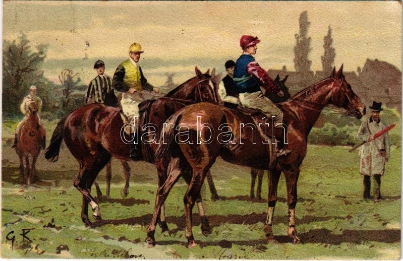 Horse racing, jockeys. P.F.B. Serie 3027. s: G.K. (EK) https://www.darabanth.com/de/420-Fernauktion/420.0/Ansichtskarten/Pferde~1000040/Horse-racing-jockeys-PFB-Serie-3027-s-GK-EK~II2660463