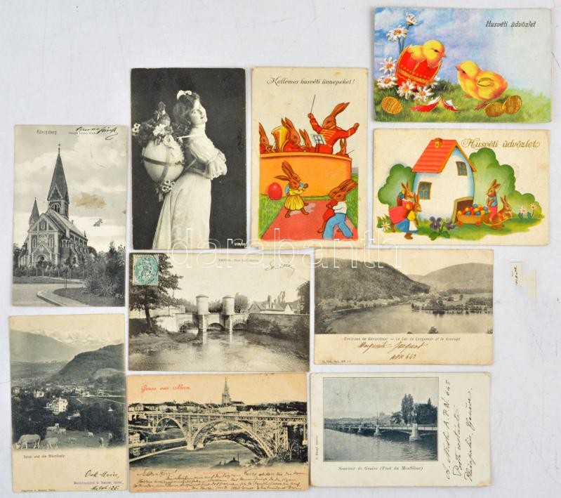 Kb. 215 db RÉGI városi és motívum képeslap vegyes minőségben. Jó böngészde: húsvéti, karácsonyi és újévi üdvözlőlapok, hölgyek / Cca. 215 pre-1945 town-view and motive postcards in mixed quality: Easter, Christmas, New Year greetings, lady