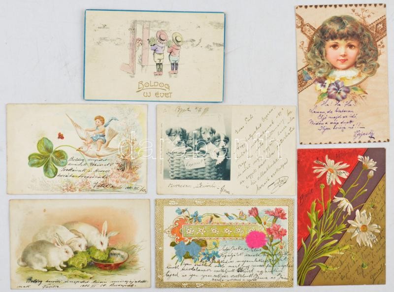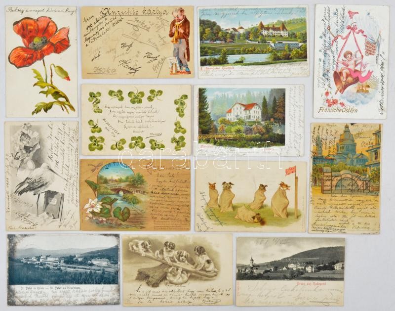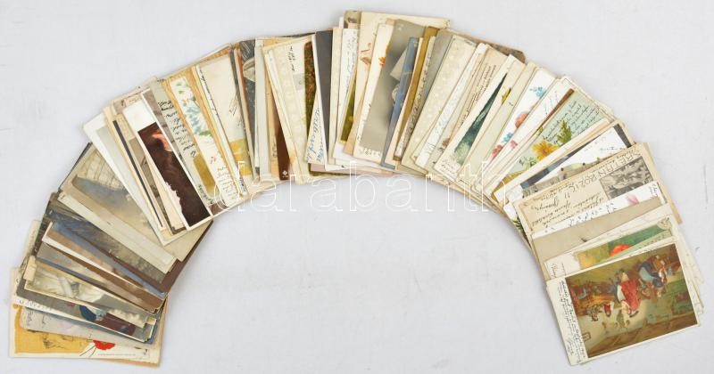 Múlt századfordulós érdekes, tartalmas képeslap gyűjtemény hagyatékból, közel 170 db főleg üdvözlő, motívum, művész képeslap, kevés - inkább osztrák - városkép. Jó minőségben megőrzött szép anyag bonbonos dobozban.