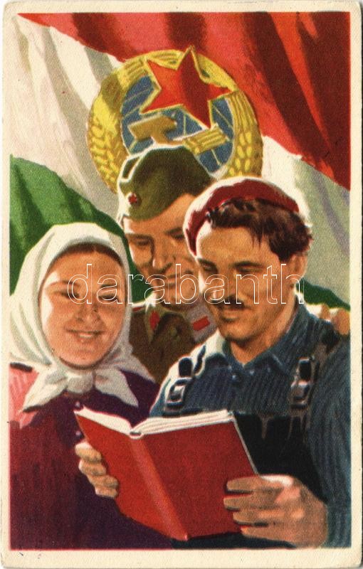 Az alkotmány 48. paragrafusa 1. A Magyar Népköztársaság biztosítja a dolgozóknak a művelődéshez való jogát. Magyar szocialista propaganda. Művészeti Alkotások / Hungarian Socialist propaganda card (EK)