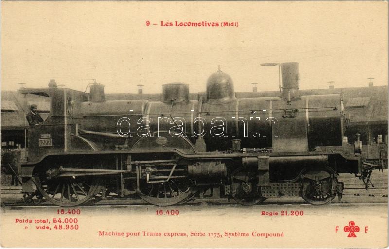 Les Locomotives (Midi) Machine pour Trains express, Série 1775. System... https://www.darabanth.com/de/420-Fernauktion/420.0/Ansichtskarten/Schienenverkehr~1000060/Les-Locomotives-Midi-Machine-pour-Trains-express-Serie-1775-Systeme-Compound-French-State-Rai~II2658763