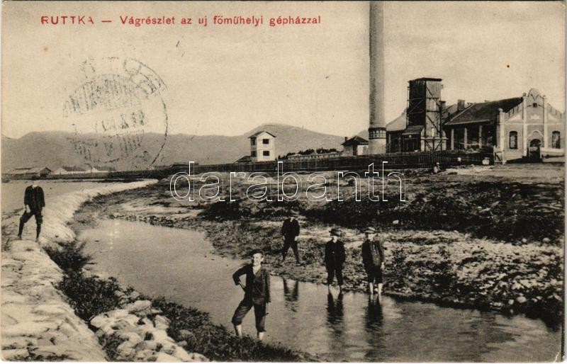 1912 Ruttka, Vrútky; Vág részlet, Kassa-Oderbergi Vasút (KsOD, KOV) új főműhelyének gépháza / machine house of the Kosice-Bohumín Railway main workshop (EK)
