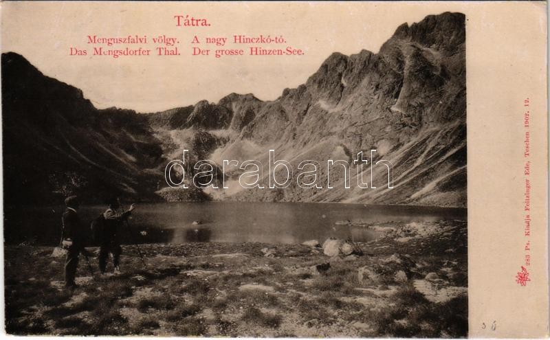 Tátra, Magas-Tátra, Vysoké Tatry; Nagy Hinczkó tó, Menguszfalvi völgy. Feitzinger Ede 1902-12. 283. Ps. / Der grosse Hinzen-See,das Mengsdorfer Thal / Hincovo pleso, Mengusovská dolina