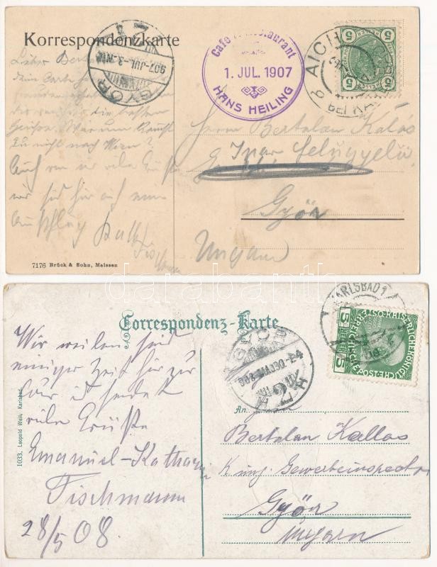 Karlovy Vary, Karlsbad; 2 pre-1909 postcards (Kallós Bertalan államtit... https://www.darabanth.com/de/420-Fernauktion/420.0/Ansichtskarten/Tschechische-Republik~1000075/Karlovy-Vary-Karlsbad-2-pre-1909-postcards-Kallos-Bertalan-allamtitkarnak-cimezve~II2664265